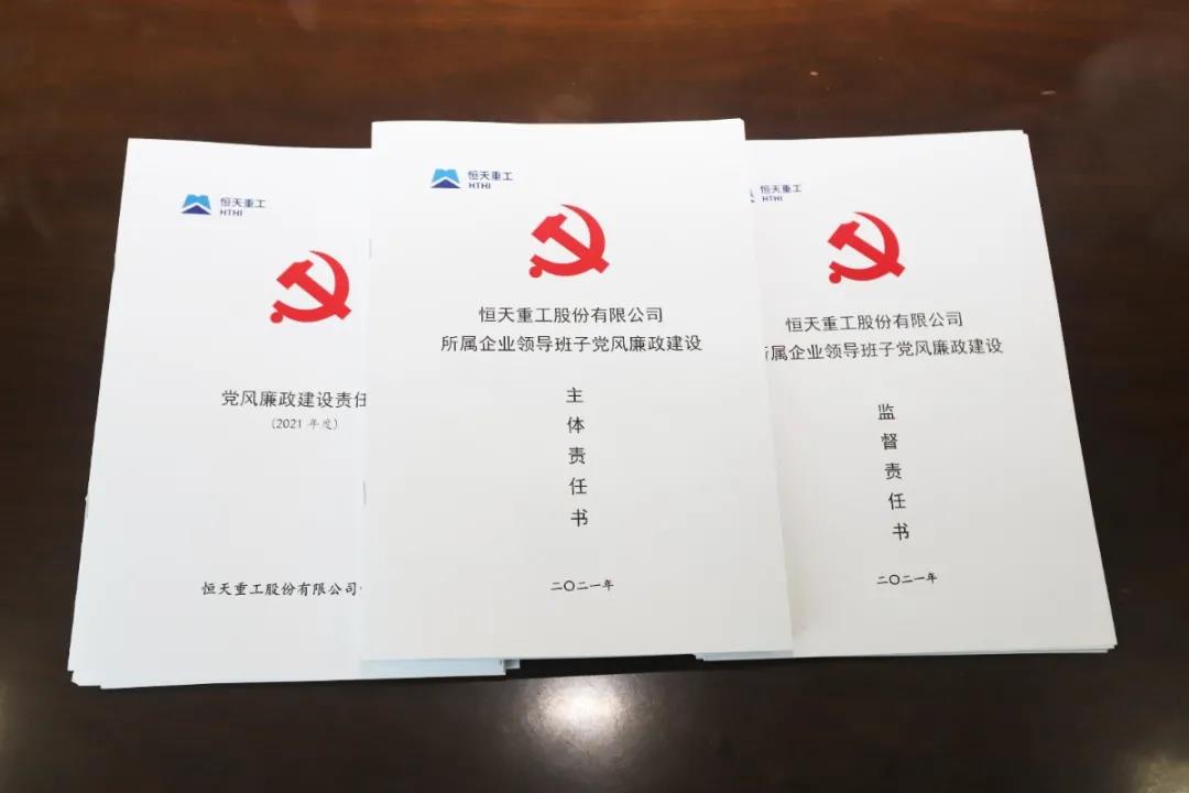 公司党委、纪委积极贯彻落实集团公司2021年全年从严治党工作会精神,先后制定印发了《恒天重工股份有限公司党委2021年工作安排意见》《恒天重工股份有限公司2021年纪委工作要点》,总体安排部署全年党风廉政建设和反腐败工作,明确了公司全年党建、纪检工作的路线图;党委、纪委分别与各二级企业和重点三级企业签订了《党风廉政建设主体责任书》《党风廉政建设监督责任书》,党委书记分别与总部职能处室负责人、事业部党总支书记签订《党风廉政建设责任书》,以签字背书的方式,构建起全级次全面从严治党责任网络。党委、纪委在专项工作、月度工作中强化沟通协同,从严从实抓好干部选拔任用、问题线索处置、监督实效发挥等工作,持续释放“越往后执纪越严”的强烈信号,让清风正气更加充盈。