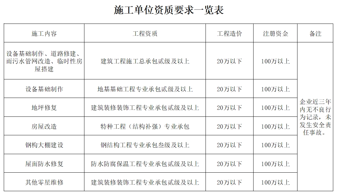 3、具备相应资质(资质要求见附表《施工单位资质要求一览表》)。